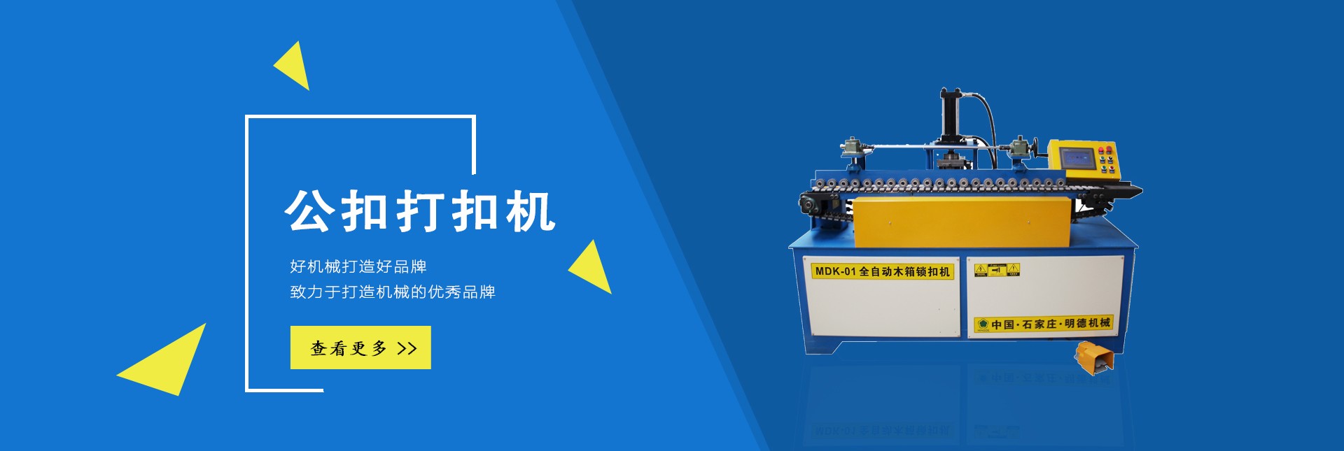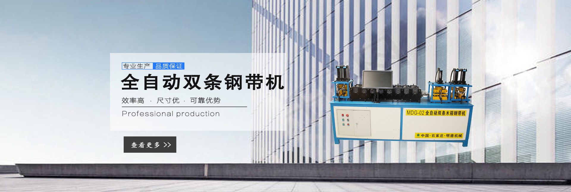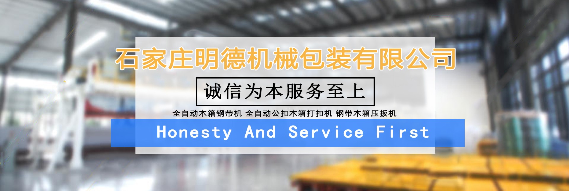 石家莊明德包裝機(jī)械有限公司,是國(guó)內(nèi)專(zhuān)業(yè)生產(chǎn)木箱雙條鋼帶機(jī)、美式托盤(pán)打釘機(jī)械、托盤(pán)刨槽機(jī)、倒角機(jī)、木包裝箱、木托盤(pán)的生產(chǎn)廠(chǎng)家,目前擁有廠(chǎng)房3000多平方米,自動(dòng)化生產(chǎn)設(shè)備數(shù)十套。 公司下轄包裝機(jī)械事業(yè)部,主要生產(chǎn)新型全自動(dòng)木箱鋼帶機(jī)、全自動(dòng)(半自動(dòng))木箱鎖扣機(jī)、折疊鋼帶箱機(jī)械、鋼帶箱壓板機(jī)、美式托盤(pán)自動(dòng)打釘機(jī)、托盤(pán)刨槽機(jī)、倒角機(jī)等相關(guān)鋼帶木箱機(jī)械、木工機(jī)械、配套產(chǎn)品,設(shè)備主體部分由高品質(zhì)機(jī)械和高精度模具組成,液壓系統(tǒng)、伺服系統(tǒng)和低壓配電單元的主要元器件,均選用西門(mén)子、施耐德等國(guó)際和國(guó)內(nèi)產(chǎn)品,大大提升了產(chǎn)品質(zhì)量,設(shè)備長(zhǎng)時(shí)間運(yùn)行穩(wěn)定可靠,獲得了用戶(hù)的一致好評(píng)。 公司下轄包裝制品事業(yè)部,主要生產(chǎn)各種實(shí)木木箱、膠合板鋼帶木箱和實(shí)木熏蒸托盤(pán)、歐標(biāo)托盤(pán)、美標(biāo)托盤(pán)、亞標(biāo)托盤(pán)及相關(guān)配套產(chǎn)品,木箱和托盤(pán)均選用優(yōu)質(zhì)九厘板材和俄羅斯原木作為原材料,從生產(chǎn)制造、成品組裝、出廠(chǎng)質(zhì)檢到送貨上門(mén),售后服務(wù)等,做到一條龍服務(wù),始終堅(jiān)持“把質(zhì)量做到更好,把成本降到更低,把實(shí)惠讓給客戶(hù)“的經(jīng)營(yíng)原則。